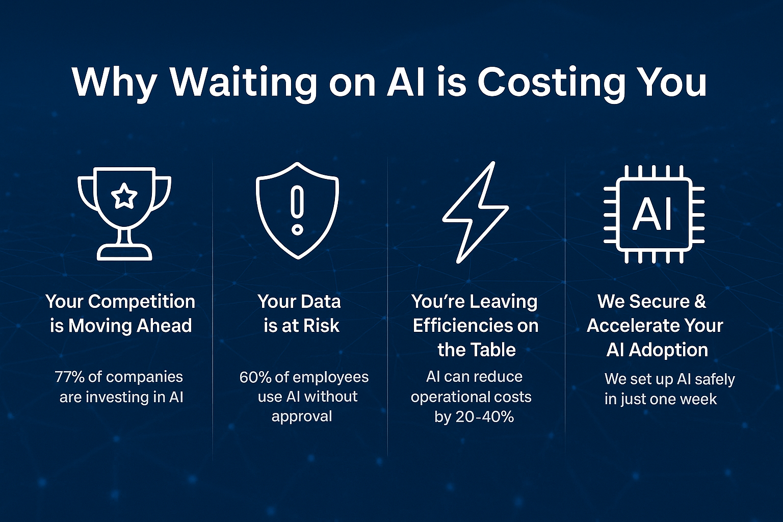 We set up AI the right way — secure, compliant, and productivity‑ready — so you don’t become the next headline.